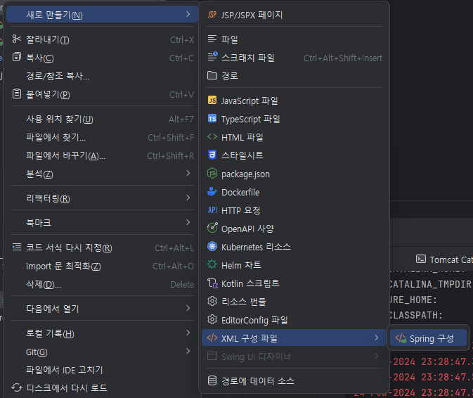 우선, WEB-INF 폴더 밑에 spring 폴더를 생성, xml파일을 생성.